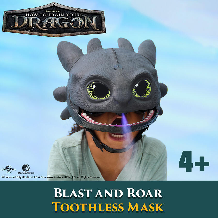 Become the famous Night Fury with How To Train Your Dragon, Blast and Roar Toothless Mask. This captivating kids dragon costume lets fans dress like their favorite dragon, Toothless. Embrace being the Night Fury with plasma blast lights, sounds and even mist to bring the adventures of Berk home. Some assembly required and batteries included. With 2 mode settings, tame the beast inside or go full Night Fury while pretending to be Toothless.