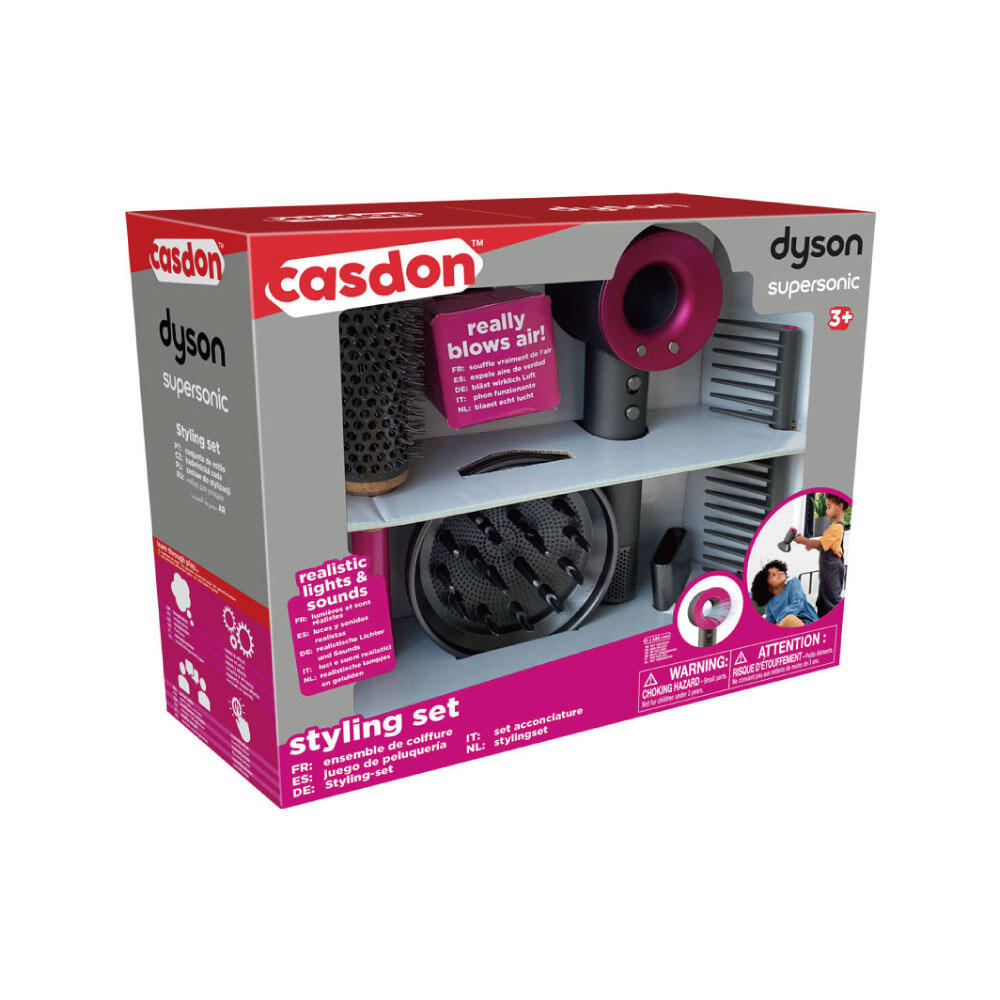 - Perfect for mini-me stylin sessions, this toy Dyson Supersonic styling set comes complete with 4 styling tools, panel lights, sound effects and blowing (cool) air - luscious locks will be tamed in no time!