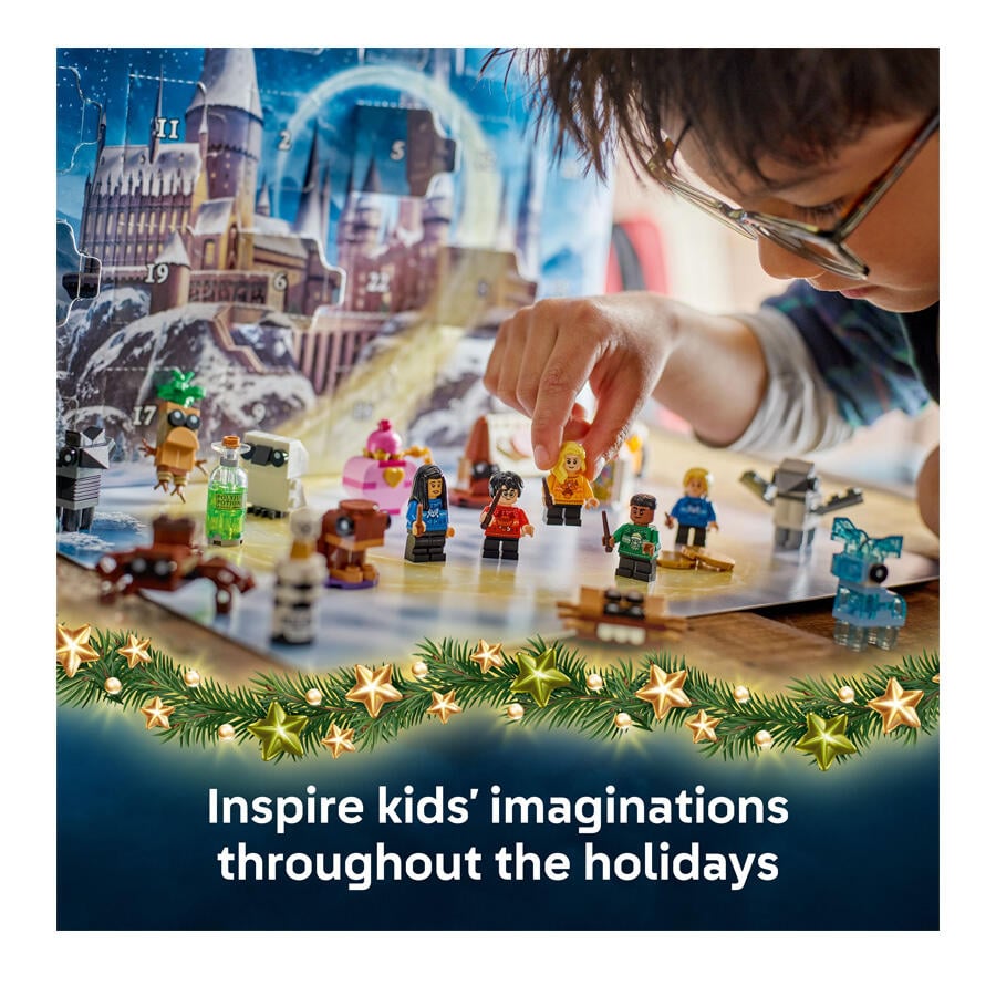 • Open the door to playful wizard adventures every day in the run-up to Christmas with the LEGO® Harry Potter™ Advent Calendar 2025 (76456) toy building set for kids. A magical Harry Potter Christmas holiday gift toy for boys, girls and any fans aged 7 and up, it is packed with buildable surprises to create festive stories in the Wizarding World™. The Advent calendar contains LEGO figures of magical creatures such as Buckbeak™, Aragog and a Stag Patronus™. There are also 8 LEGO minifigures of popular characters, including Harry Potter, Cho Chang™, Draco Malfoy™ and Luna Lovegood™, each wearing Hogwarts™ Christmas jumpers and with wand elements. Fun, collectible mini builds of iconic items such as a Hogwarts acceptance letter, a box of Bertie Bott’s Every-Flavour Beans™, the Sorting Hat™, various magical potions and The Monster Book of Monsters add to the play possibilities. Set contains 278 pieces.