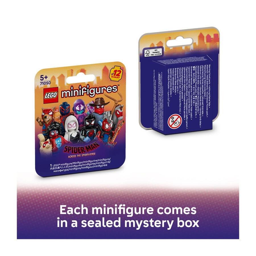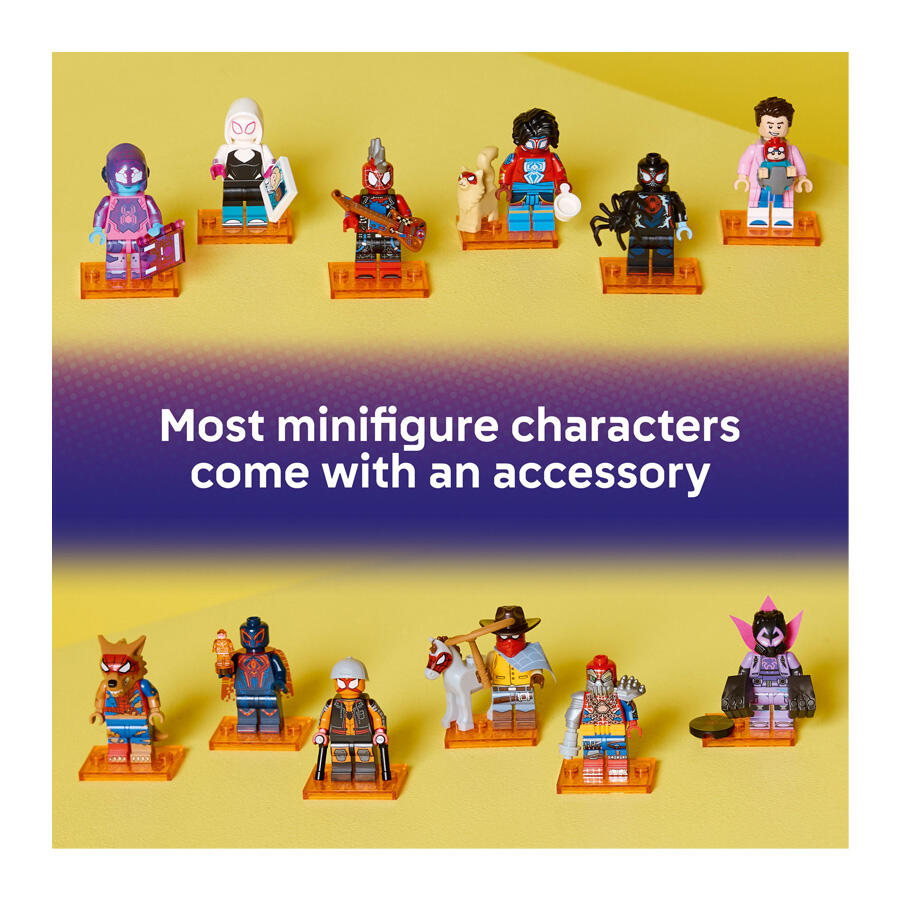Spider-Man: Across the Spider-Verse fans will love these 12 LEGO® minifigures, with 1 character and authentic accessories in each mystery box.