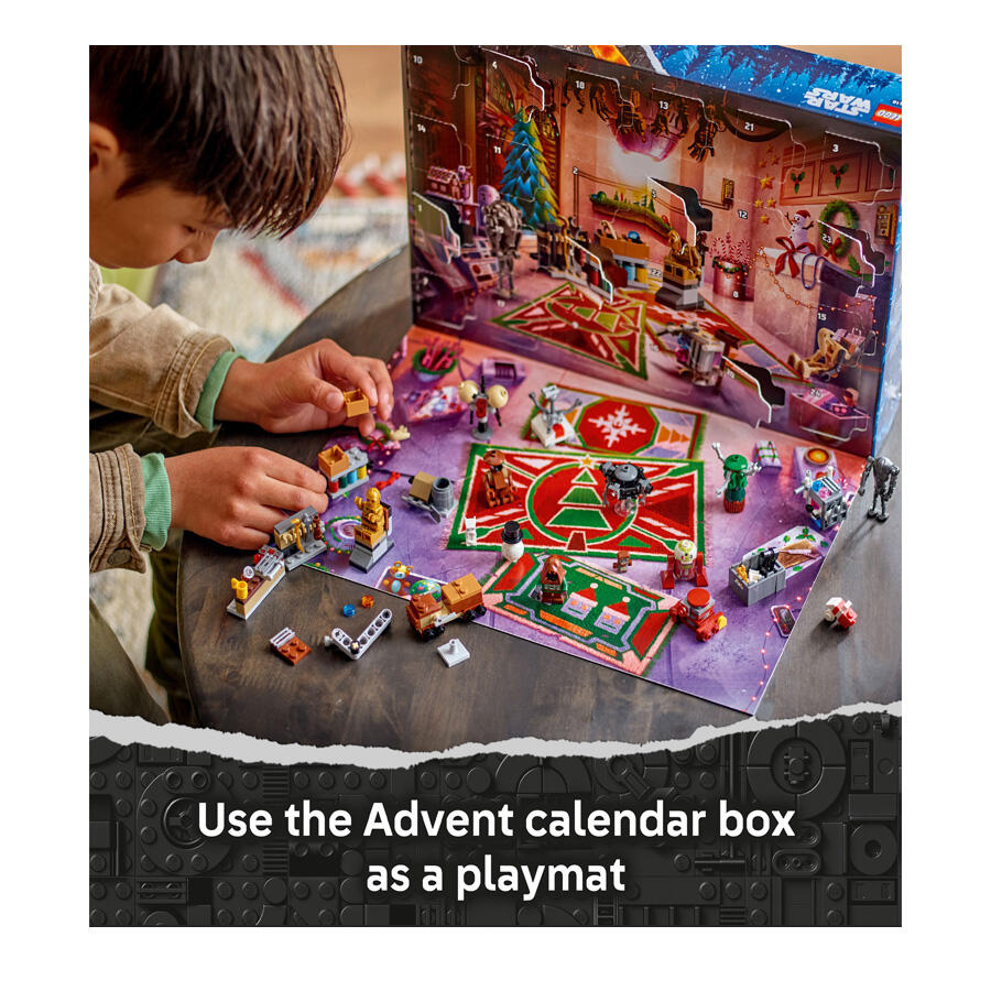• Give kids hours of festive fun creating their own droidsmith workshop and role-playing fantasy stories as iconic characters with the LEGO® Star Wars™ Advent Calendar 2025 gift set (75418). With unique building toys behind every door, this Advent calendar makes a brilliant Christmas holiday gift for boys, girls and any fan aged 6 and up. Look out for BB-8 in snowman outfit, a Jawa, Mouse Droid and Medical Droid in holiday outfits, plus lots of other droids. This LEGO Star Wars collectible set also includes a LEGO figure of droidsmith Babu Frik and connectible mini builds to create his workshop, plus a connectible Jawa buildable vehicle and crane, a box of extra droid parts… and a Christmas tree, of course. With a surprise treat every day, this buildable toy playset offers hours of engaging creative activities for kids and all the family to enjoy in the run-up to Christmas.