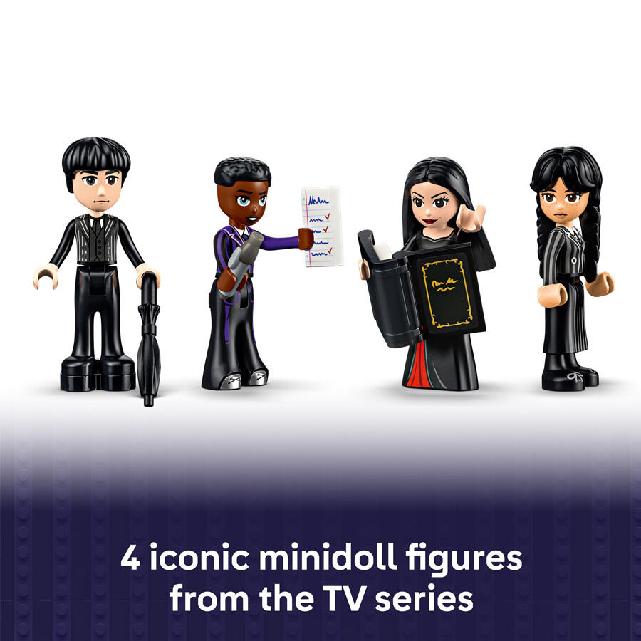 - Adventures await Wednesday fans aged 10 and up with a fun modular building activity for kids and families in this imaginative Morticia’s Cottage (76786) LEGO® Wednesday Addams gift merchandise playset. The model house building kit features a 6-room, 2-floor, brick-built cottage with opening sides, featuring a fully equipped kitchen, living room with fireplace, bedroom, séance room and a bathroom. There’s also a buildable family car, loads of play starters and accessories, and 4 minidoll figures to inspire role play: Bianca Barclay, Lurch, Morticia Addams and Wednesday Addams. This set makes a creative birthday or Halloween gift for girls, boys and kids who are into LEGO building or the Wednesday TV series. Fans can find other LEGO Wednesday Addams sets (sold separately) in the range for more adventures. Plus, they can enjoy an intuitive experience using the LEGO Builder app, which lets kids zoom in and rotate models in 3D, save sets and track their progress. Set contains 1,002 pieces.