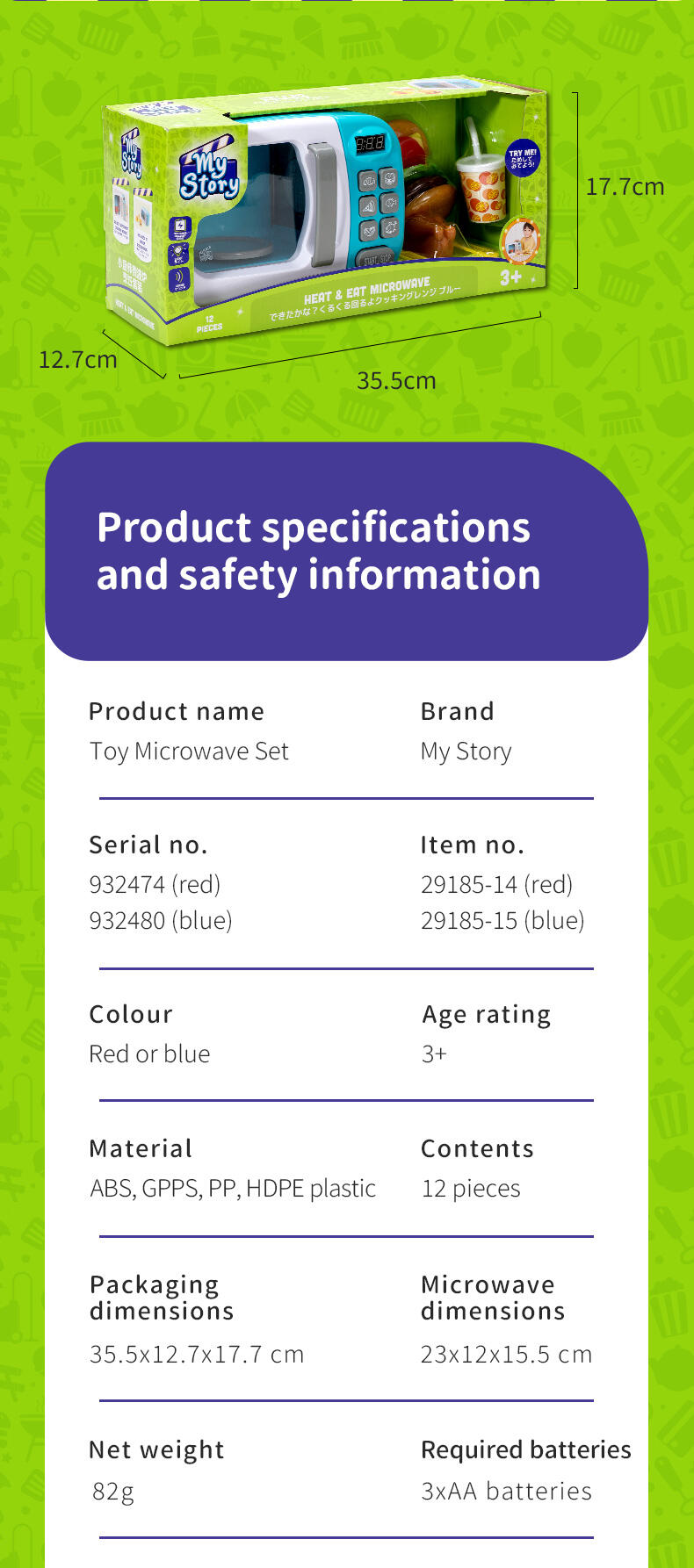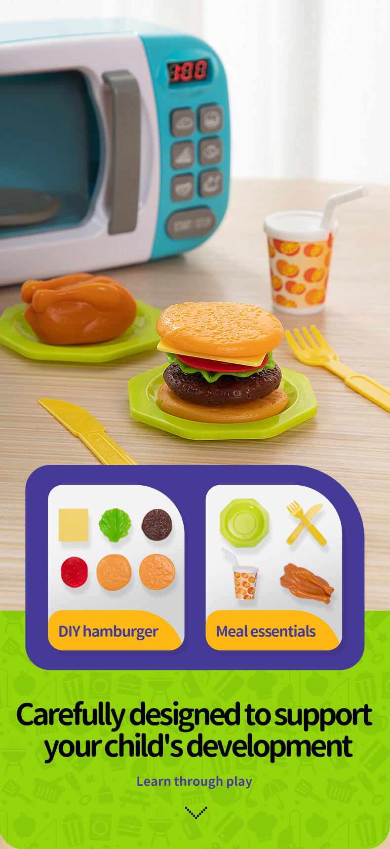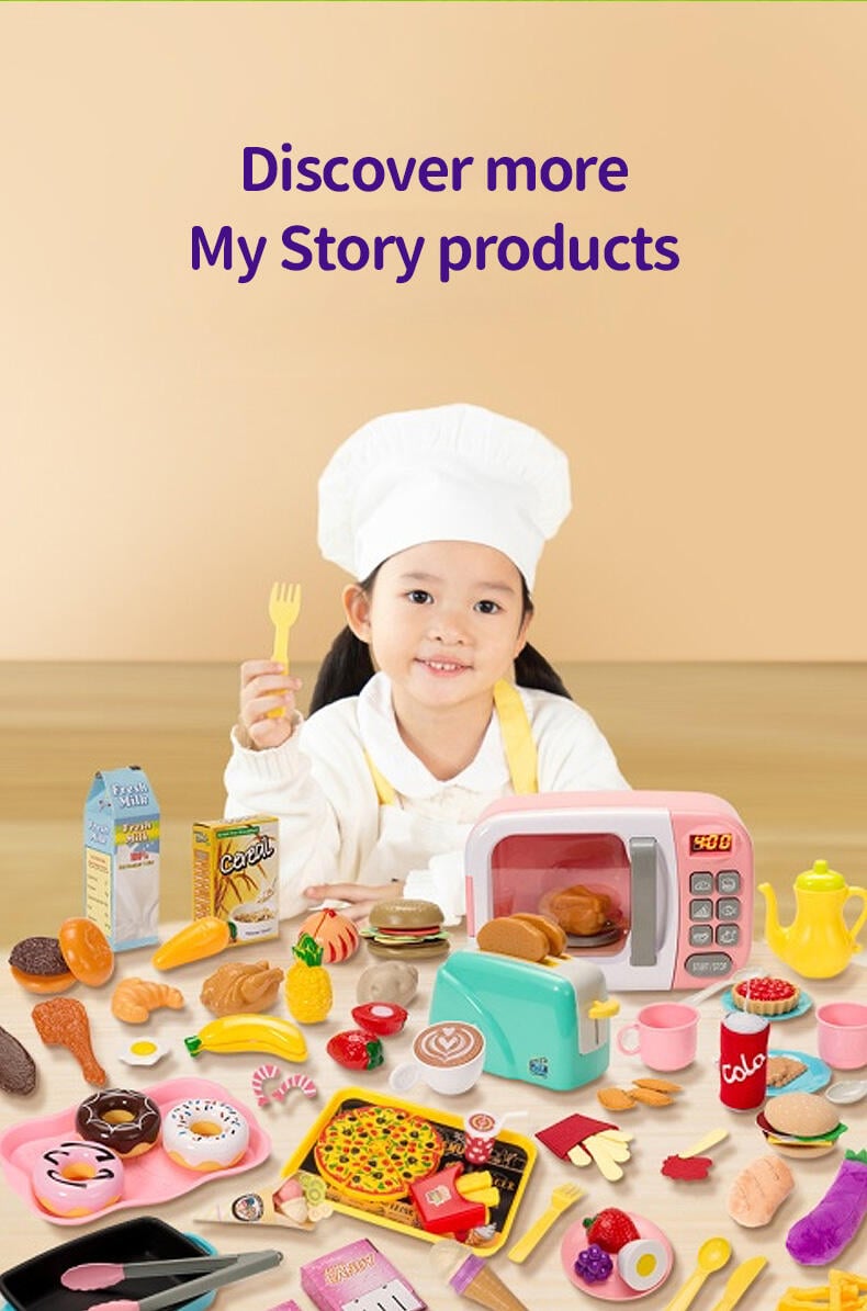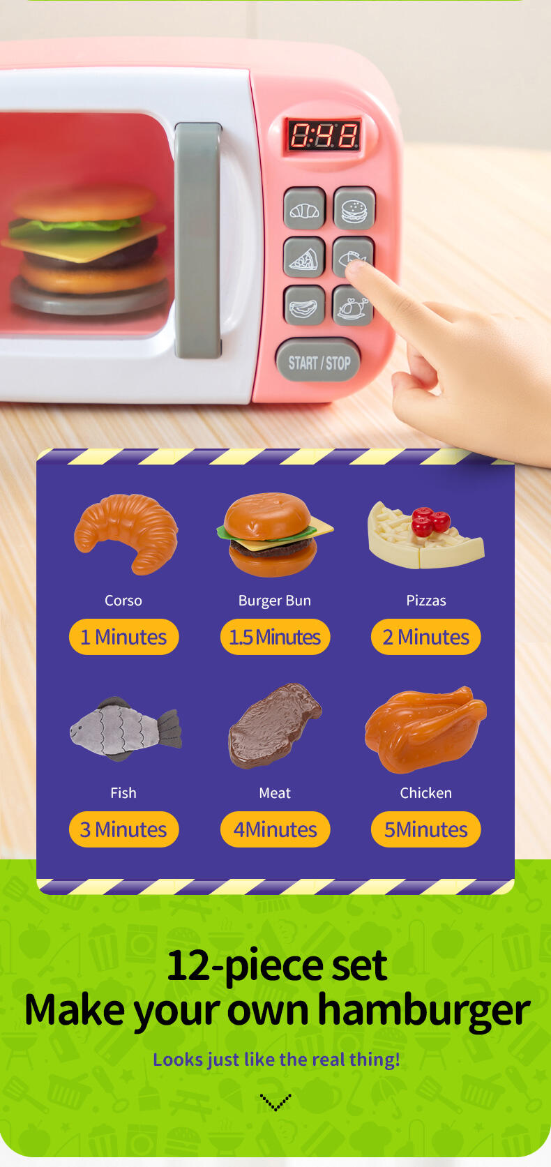 The Mini Microwave has realistic lights and sounds that work just like the real thing! There are buttons to press, a cooking plate that spins, and a light that activates when the microwave is in use. Accessories like food and utensils ensure that the play experience feels just like the real thing as kids cook and prep delicious meals for friends and family. The interactive and authentic functionalities of this toy creates a positive and open experience that ensure little ones build confidence through play.