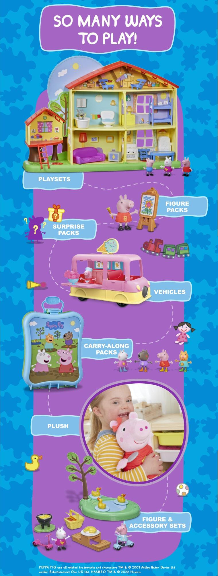 A mix of 6 different character dolls and accessories. Children can have fun adventures with Pepe and her friends. Inspired by the popular Peppa Pig Show, each character is equipped with a special accessory to stimulate the imagination of children.
