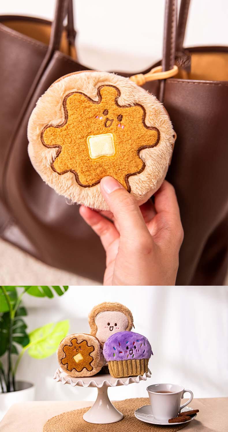 This adorable purse is made of plush material. It has a soft feel, interesting design, and eye-catching. Also very convenient to carry.