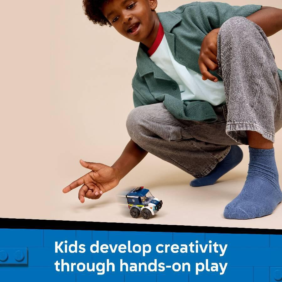 Part of the LEGO City Rides collection, this easy-to-build police truck toy is perfect for young children and makes a great anytime surprise or birthday gift for boys, girls and kids who love toy cars and imaginative play. Add it to other LEGO City sets (sold separately) for more adventures.