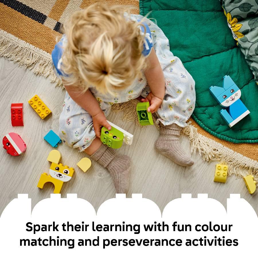 Fill playtimes with color and creativity with the LEGO® DUPLO® My First 3 in 1 Creative Cute Pets (10477) animal toy. This cute pet toy for kids ages 18 months plus offers 8 different building options with the same set of bricks.