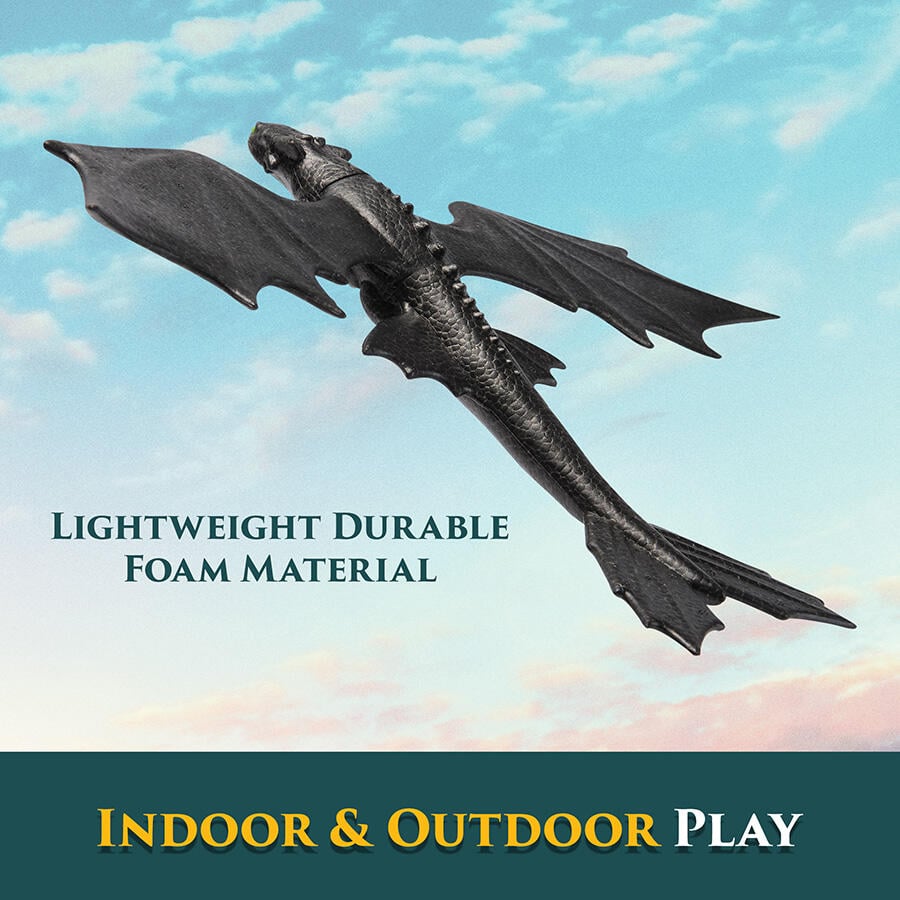 Create epic adventures with How To Train Your Dragon Soaring Toothless Dragon Glider! This Toothless dragon toy transports you right into the thrilling Isle of Berk! Snap on Toothless’ 15-inch wings and get him ready to soar through the sky as you launch him indoors or outdoors. Made from lightweight, durable foam material, Toothless can glide up to 25 feet. Kids can recreate their favorite scenes or invent new stories as they dive into pretend play and sensory play with this engaging dragon figure toy.